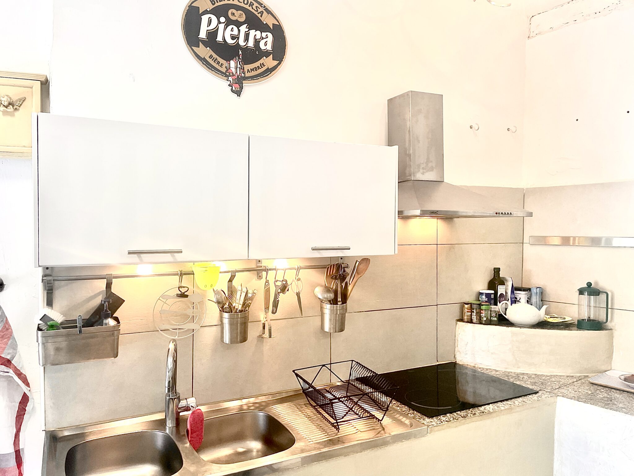 mit Steinen gepflastert in ruhiger Lage ohne Auto. Möglichkeit, über einen Weg zum Fluss zu gelangen. Kleiner Pfad, der zum Stranddorf Erbalunga führt (10 Minuten).